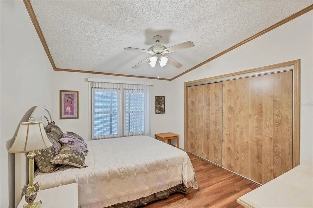 This beautifully decorated, turn-key furnished, 2-bedroom, 2-bathroom home is in Tangerine Woods. This highly sought after, over 55 community, is an active and friendly place to live! For your leisurely pleasure, this community provides you with a large heated pool and clubhouse, an exercise room and library, tennis and pickleball courts, walking trails, shuffleboard and so much more! This 2-car carport home, had a new A/C in 2025 and boasts well maintained laminate floors. A wonderfully large renovated kitchen, complete with new countertops and cupboards, which includes a breakfast bar and large pantry, is surely a chef's delight! The spacious great room is tastefully decorated and has sliders that lead to the tiled lanai, with new windows installed in 2009, is also neatly decorated, and extends your entertaining area. The master bedroom is beautifully furnished and has a nicely updated en suite bathroom, complete with dual sinks, a vanity and a step-in shower. The guest bedroom has a large closet and is also tastefully furnished. The guest bathroom has also been updated. Additionally, there is a bonus room that serves as a versatile flex space for either a home office, hobby room, library or storage, complete with counter space and cupboards. There is a large storge shed with plenty of shelves and counter space, that houses the washer and dryer. The yard is on a greenbelt that is lush and green and provides a tranquil setting. The low monthly HOA payment of $226 includes cable TV, internet and grass cutting, and Tangerine Woods is pet friendly! This community is close to Historic Dearborn St., which provides casual dining, evening entertainment, locally owned shops and a Farmers Market on Thursdays. The local beaches are just 4 miles away, as well as many local golf courses, and world class fishing! This house could be your next home-sweet-home!